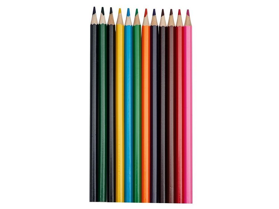 Набор из 12 шестигранных цветных карандашей твердостью ТМ. Нанесение можно сделать на всей поверхности упаковки