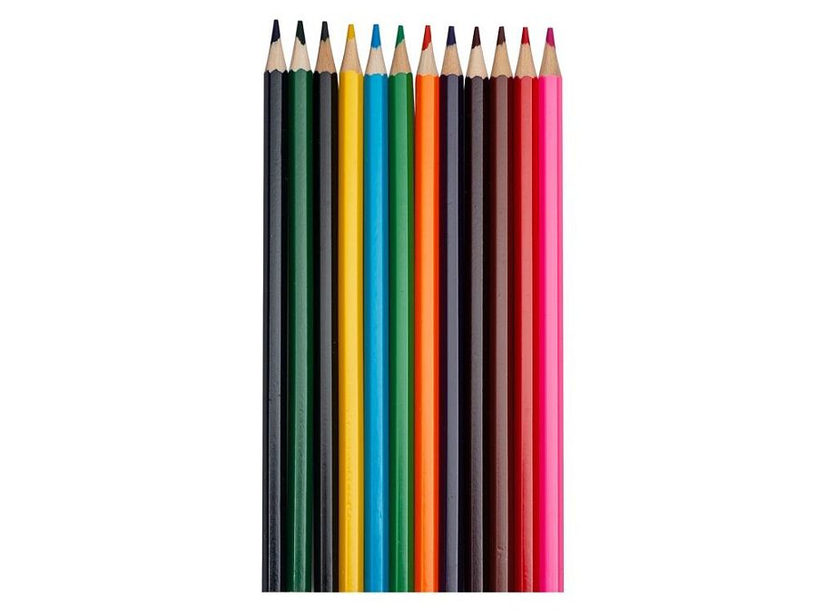 Набор из 12 шестигранных цветных карандашей твердостью ТМ. Нанесение можно сделать на всей поверхности упаковки