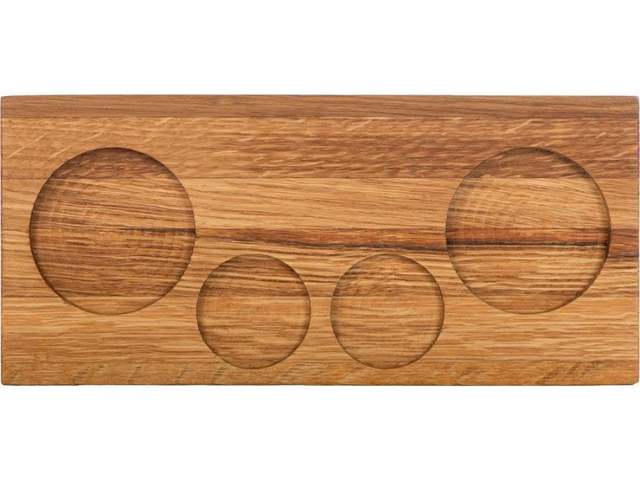 Для сервировки в набор входит дубовый поднос с выемками под бокалы и шайбы.