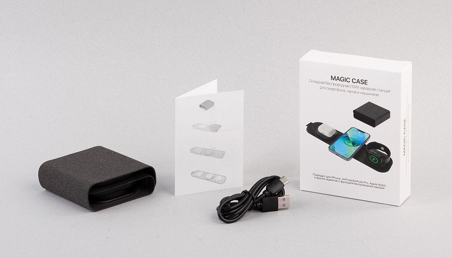 В сложенном виде (на магнитном креплении) быстрая беспроводная зарядная станция легко помещается в сумке/рюкзаке/портфеле. Зарядный блок для смартфона оснащён функцией MagSafe – магнитным держателем для iPhone двенадцатой серии и выше.