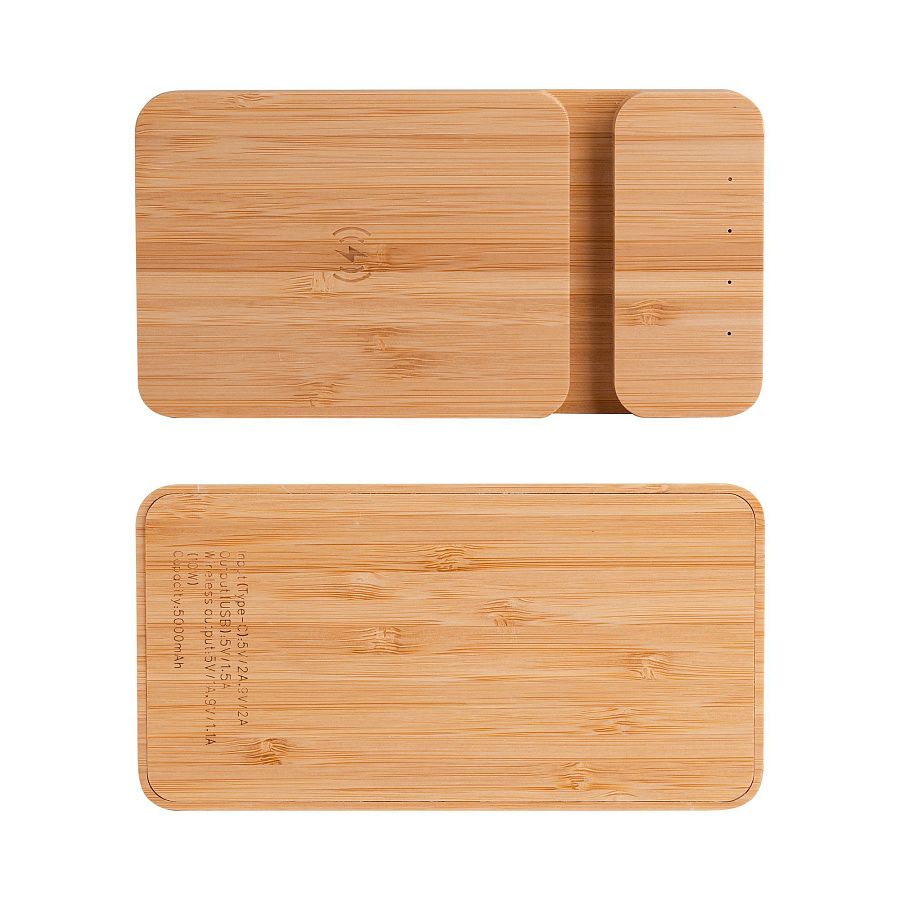 Удобная подставка для смартфона из натурального материала (бамбука) является полностью мобильным устройством благодаря внутренней батарее ёмкостью 5 000 mAh. Где бы Вы не находились, в любой момент можно воспользоваться быстрой (10W) беспроводной зарядкой или, используя выход USB, подзарядить свой гаджет с помощью кабеля.
