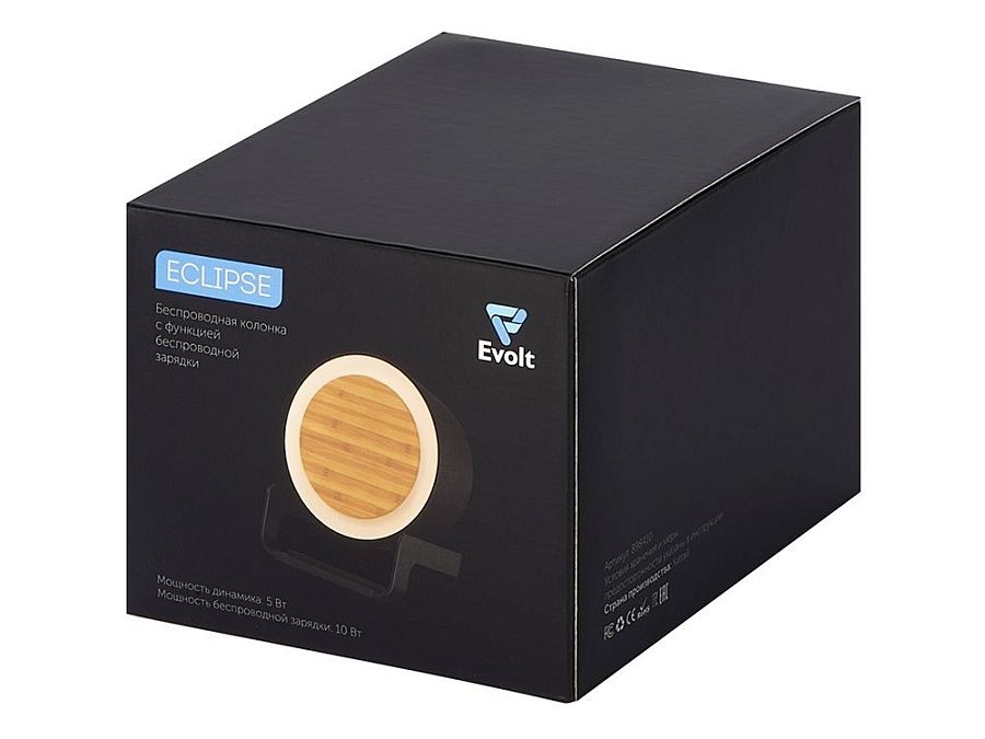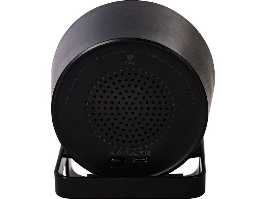 Беспроводная колонка Eclipse не только воспроизводит музыку, но и заряжает Qi-совместимые устройства, которые можно комфортно разместить на специальной подставке.
