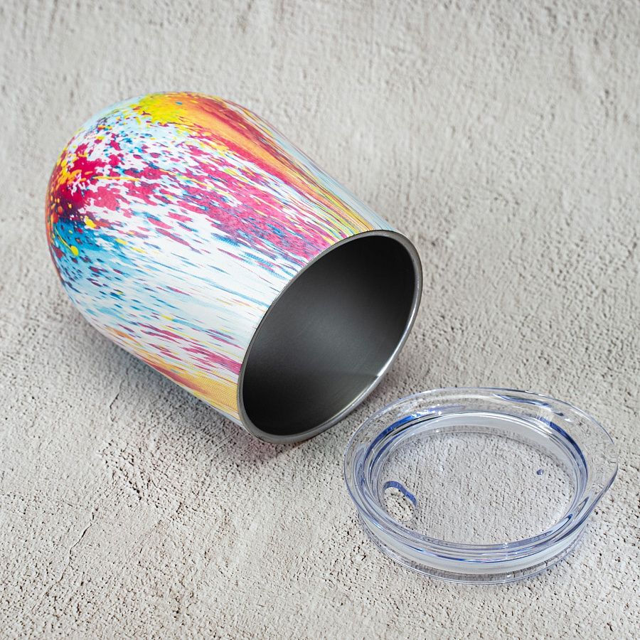 Характерная обтекаемая форма с расширяющейся нижней частью придает коферу оригинальность. Благодаря этой форме, кофер можно использовать для любых напитков: вода, чай, кофе, вино, коктейли - наливайте в кофер все, что захотите, напиток надолго сохранит свою температуру и вкус.