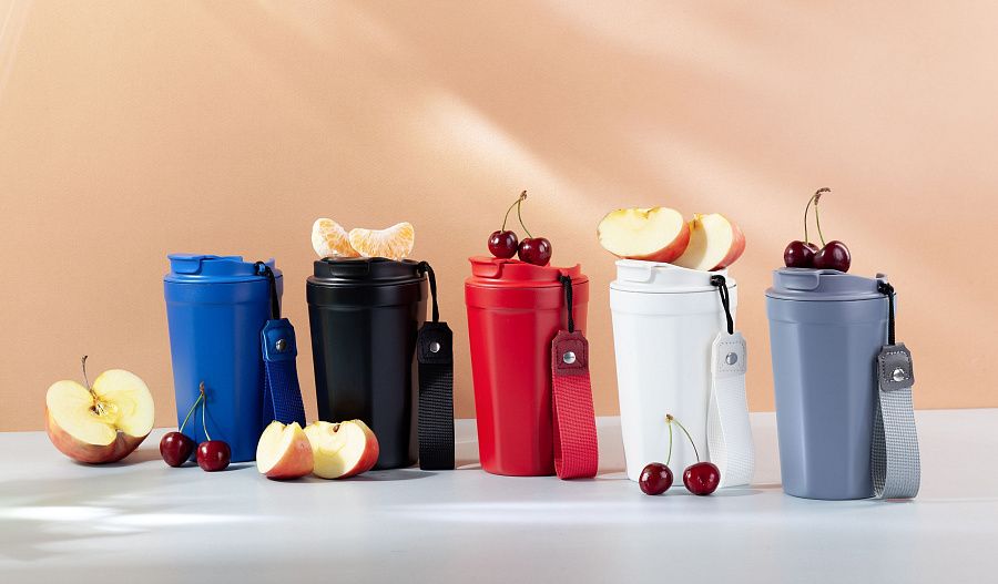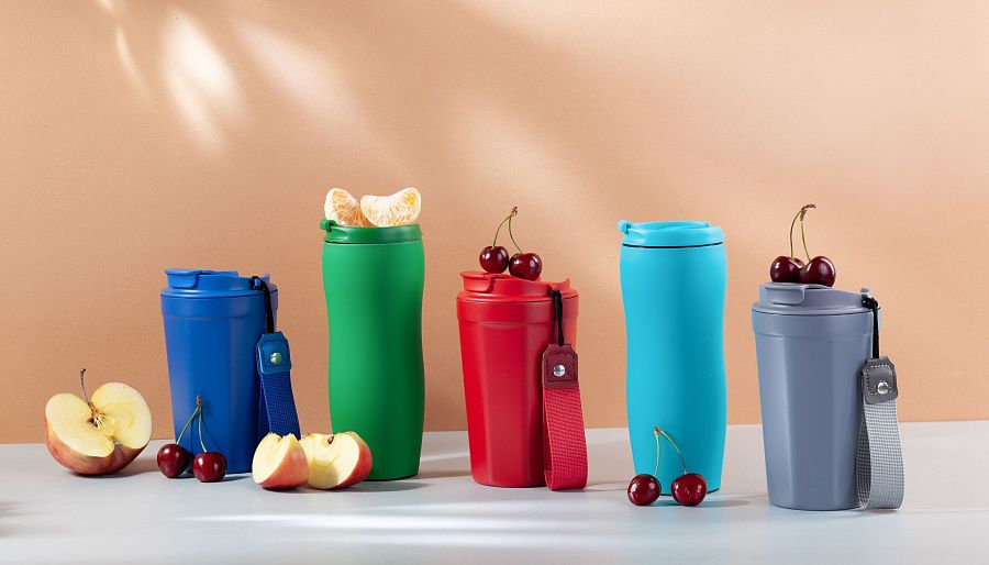 Герметичный термостакан с восьмигранной формой внешней стенки. Материал колбы 304 сталь, внешнее покрытие - порошковая краска (пудра). Крышка из полипропилена на резьбе с силиконовым уплотнением, фиксация клапана в крайних положениях.