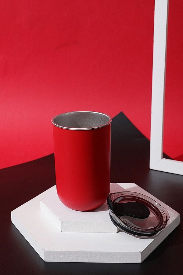 Характерная обтекаемая форма с расширяющейся нижней частью придает коферу оригинальность. Благодаря этой форме, кофер можно использовать для любых напитков: вода, чай, кофе, вино, коктейли - наливайте в кофер все, что захотите, напиток надолго сохранит свою температуру и вкус.