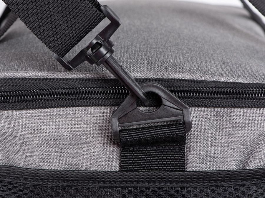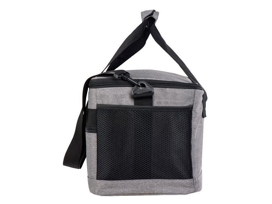 Вместительная сумка-холодильник со специальной конструкцией дна, предотвращающей протекание наружу жидкости от размораживания. Поверхность сумки всегда остается сухой. Основное отделение и карман спереди на молнии. Сбоку 2 сетчатых кармана. Съемный плечевой ремень регулируется по длине. Короткие ручки фиксируются вместе застежкой-липучкой. В комплекте открывалка для бутылок.