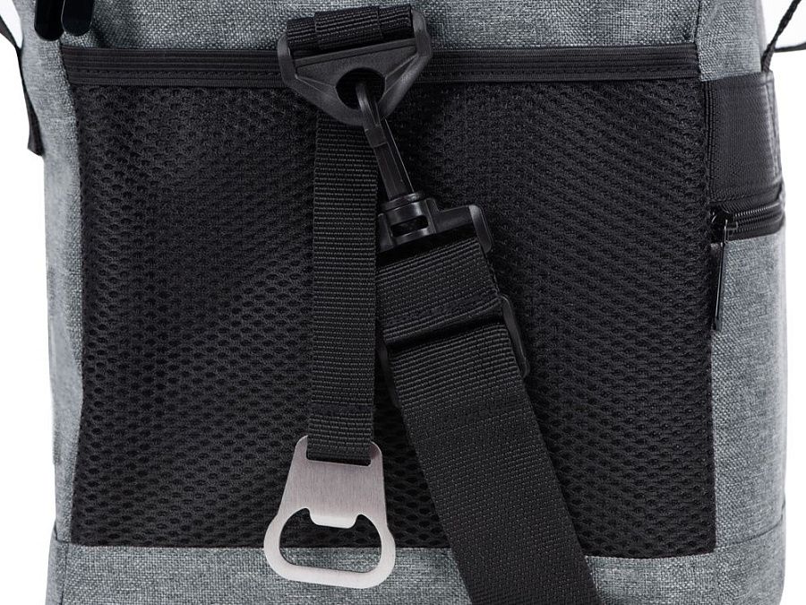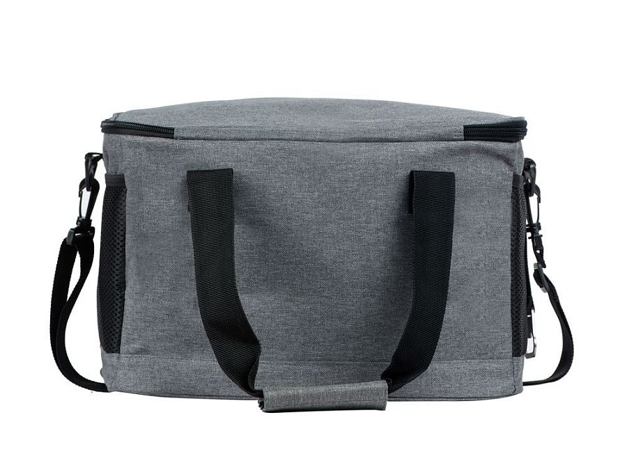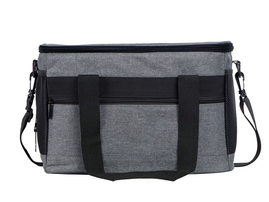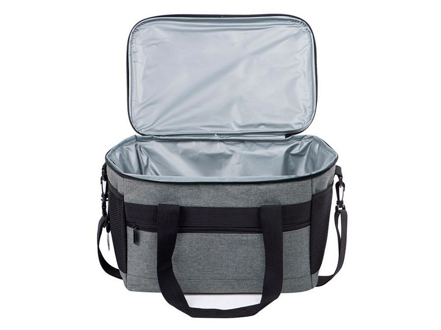 Вместительная сумка-холодильник со специальной конструкцией дна, предотвращающей протекание наружу жидкости от размораживания. Поверхность сумки всегда остается сухой. Основное отделение и карман спереди на молнии. Сбоку 2 сетчатых кармана. Съемный плечевой ремень регулируется по длине. Короткие ручки фиксируются вместе застежкой-липучкой. В комплекте открывалка для бутылок.
