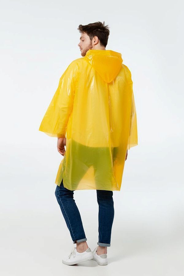 Дождевик-плащ с капюшоном и длинными рукавами из полиэтилена высокого давления (ПВД).