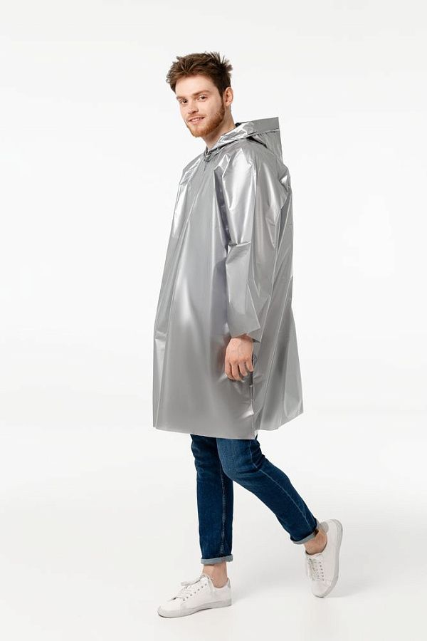 Дождевик-плащ с капюшоном и длинным рукавом из плотного полиэтилена высокого давления (ПВД).