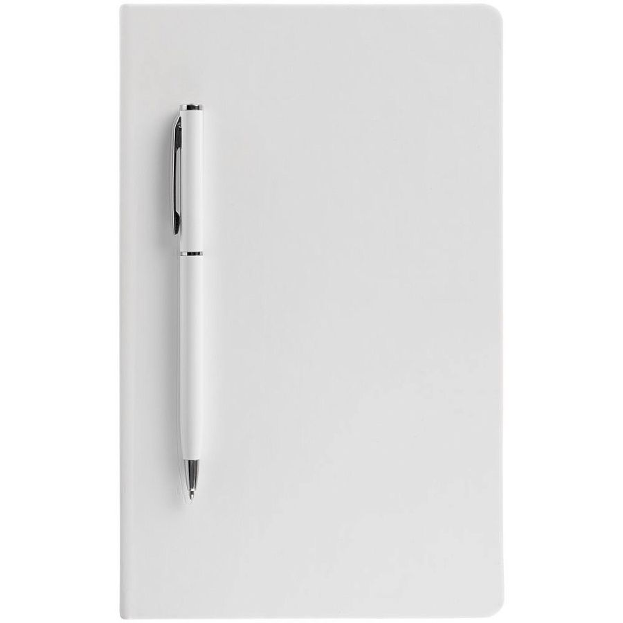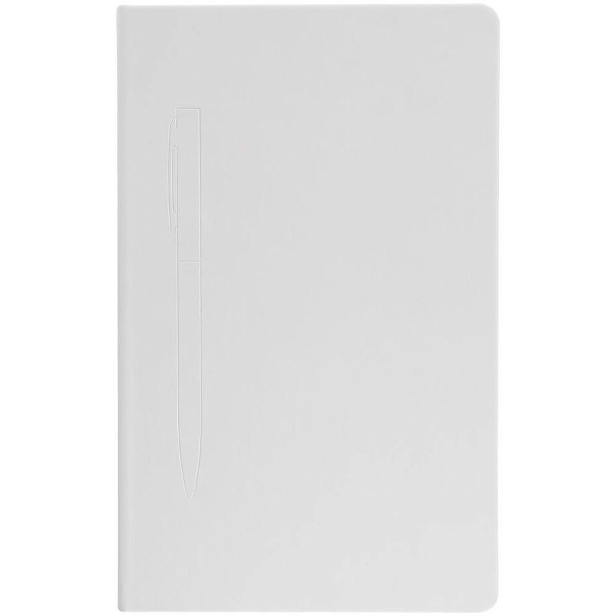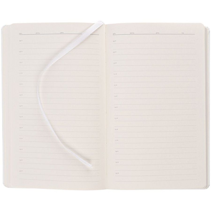 Ежедневник в твердой обложке, выполненной из материала Soft Touch, белый ВВ, дополнен атласным ляссе и магнитом, удерживающим ручку.