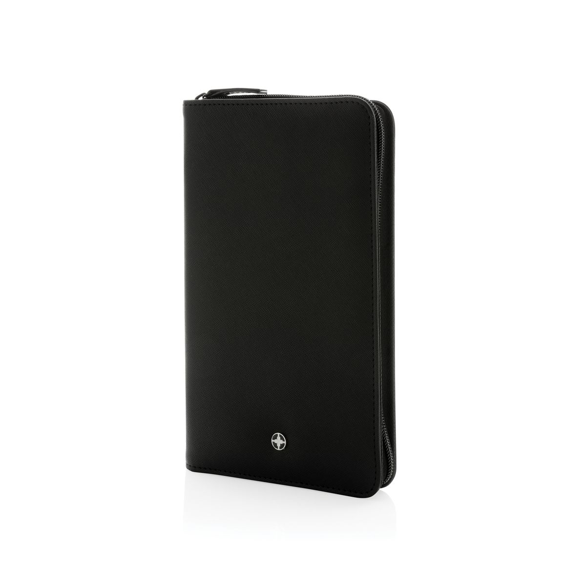 Держите все самое ценное при себе с этим роскошным дорожным органайзером Heritage от Swiss Peak. 4 слота для карт, отделение для документов и билетов, петля для ручки и даже место для смартфона! Дорожный органайзер изготовлен из 100% переработанного полиуретана и сертифицирован RCS. Это гарантирует полный контроль всей цепочки поставок вторичных материалов: от переработки до готового изделия. Общее содержание вторичного сырья: 36% от общего веса изделия. Не содержит ПВХ.