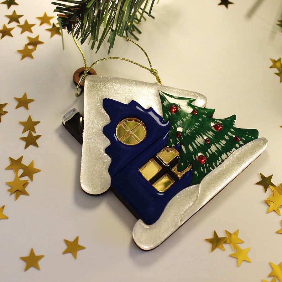 Елочная игрушка «Домик» —новогоднее украшение из коллекции "Русские сезоны", сделанное вручную российскими мастерами.