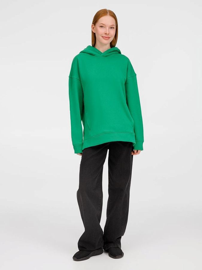Худи унисекс оверсайз со спущенным плечом и внутренним карманом-кенгуру.