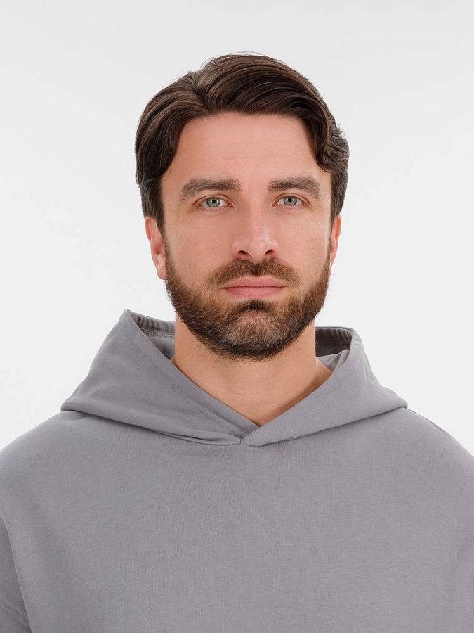 Худи унисекс со спущенным плечом и карманом-кенгуру расслабленного силуэта.