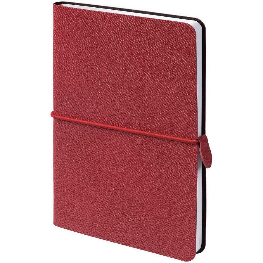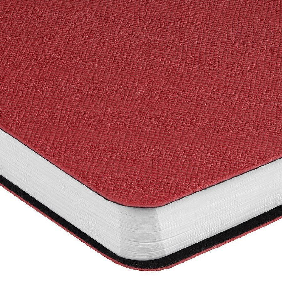 Блокнот с гибкой обложкой, выполнен из материала Saffian, красный РР. Дополнен ляссе в цвет обложки.
