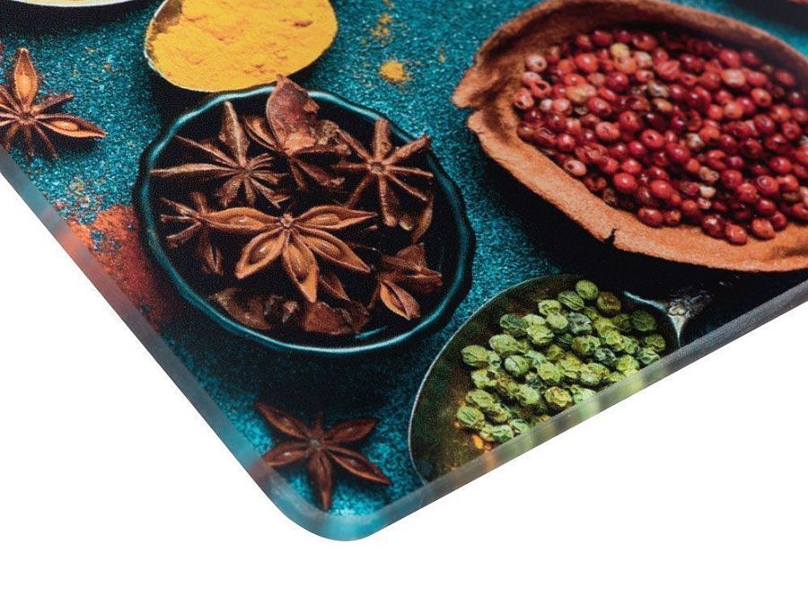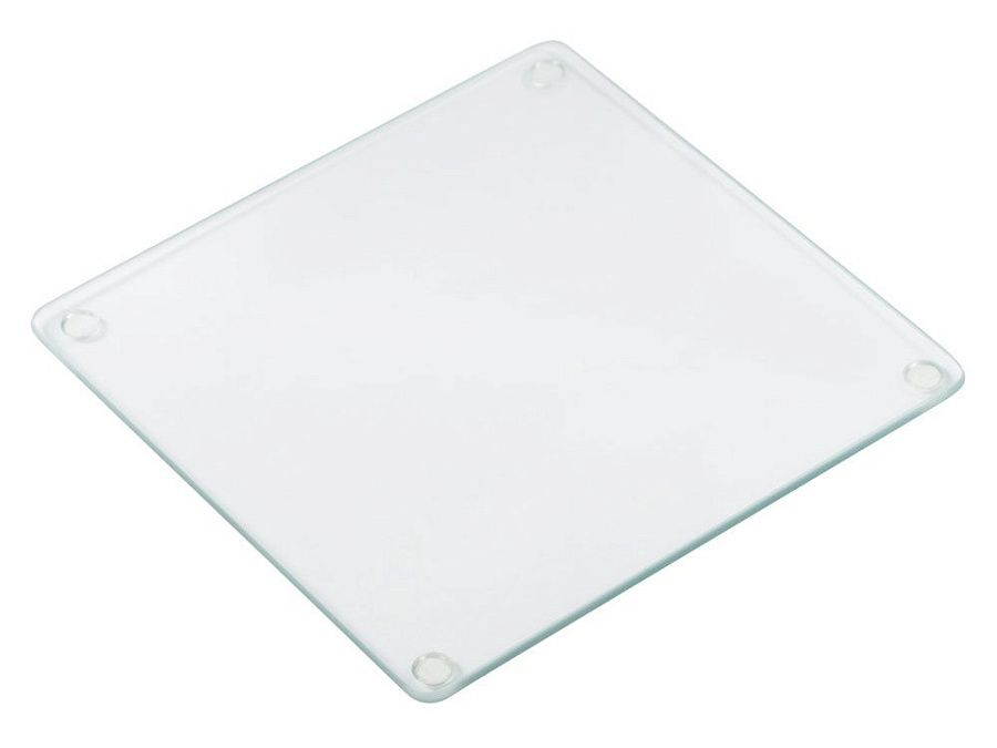 - доска выполнена из закаленного стекла - на такой можно разделывать продукты и не переживать, что доска треснет