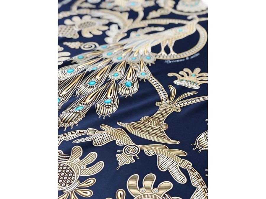 В центре композиции излюбленный сюжет традиционного русского орнамента - царственные павлины. Они горделиво восседают в обрамлении из фантастических цветов и виноградных лоз.