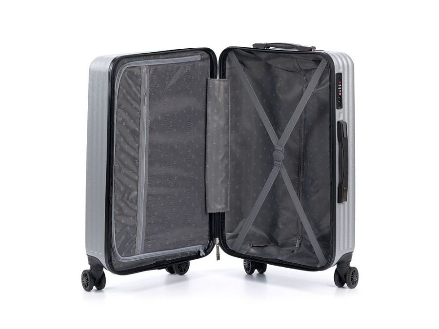 Чемодан полностью раскрывается на 2 вместительных отделения, с перегородкой на молнии и ремнями в форме X для надежной фиксации вещей на месте.