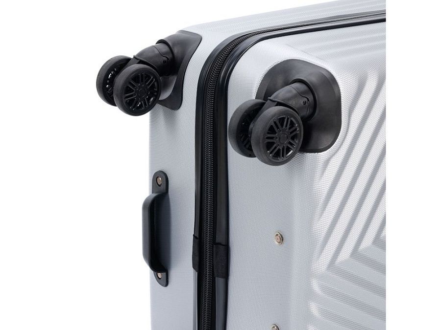 Легкая регулируемая телескопическая алюминиевая ручка и система из 8 колес, вращающихся на 360 градусов, обеспечивает мягкий ход и свободное движение во всех направлениях.