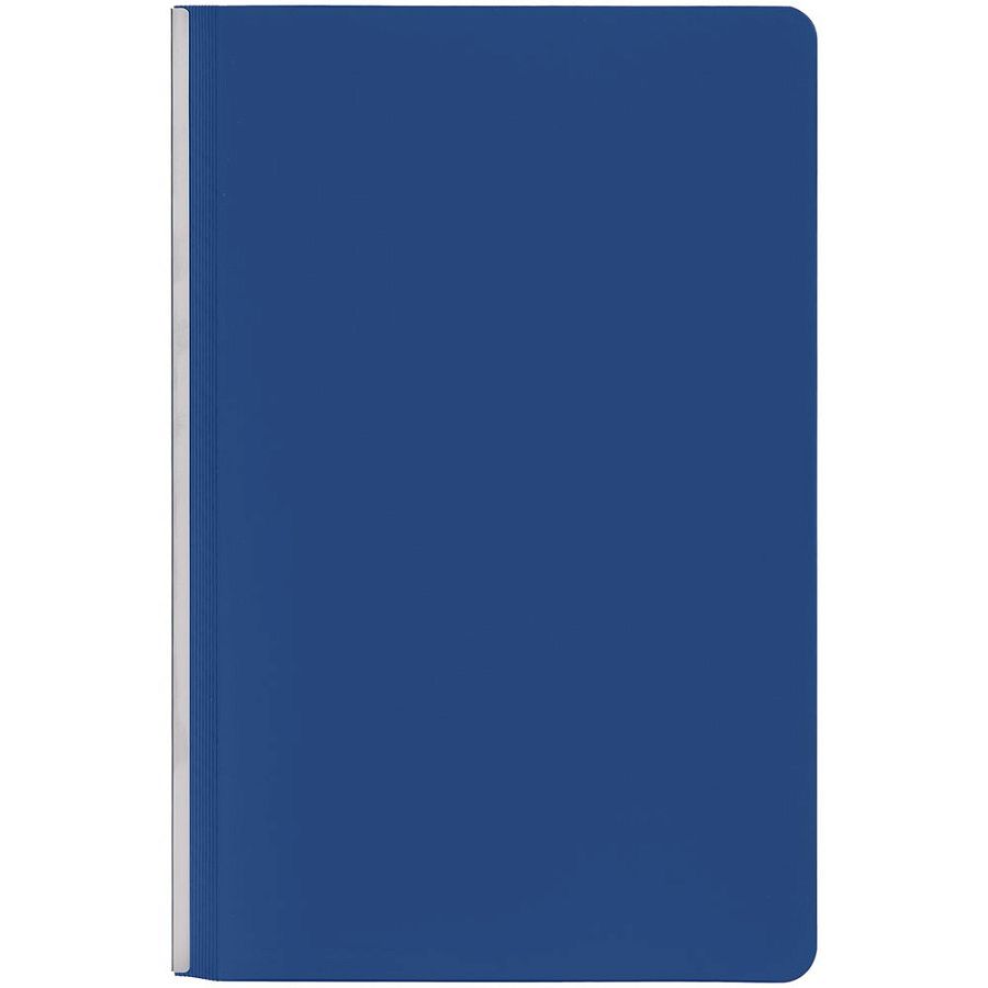Ежедневник с гибкой обложкой и металлическим корешком, выполнен из материала Soft Touch Ultra, синий НН, дополнен серебристым обрезом блока и ляссе.