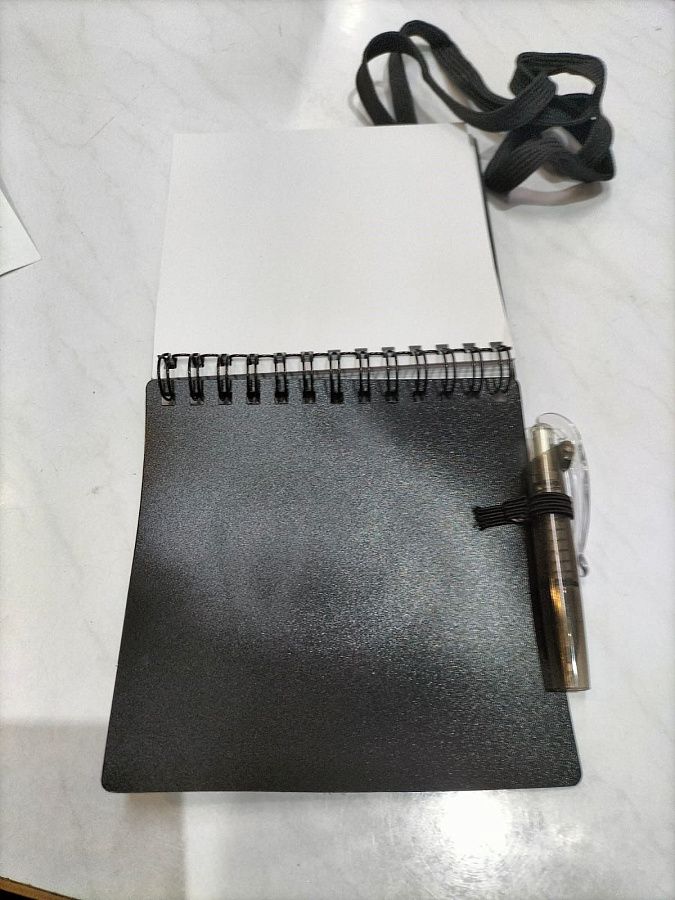 Яркий блокнот с шариковой ручкой можно носить на шее благодаря специальному ремешку (45 см). Отличный промо-сувенир, на обложку которого можно нанести логотип.