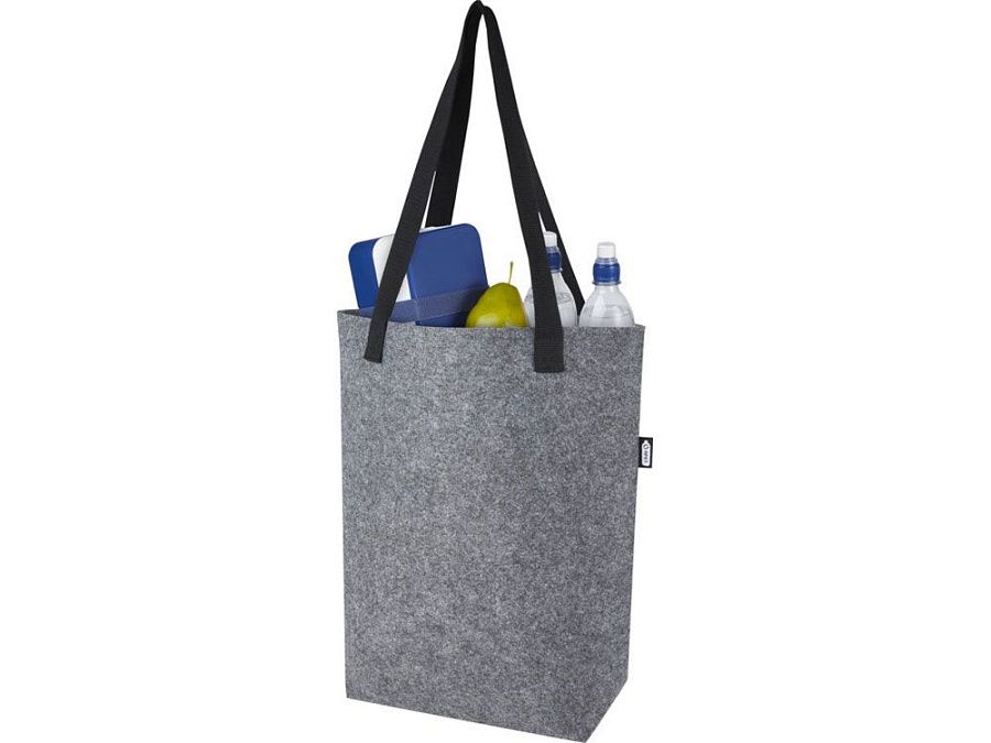 Практичная эко-сумка из мягкого и прочного высококачественного фетра, переработанного по стандарту GRS. Имеет длинные тканые ручки из хлопка (30 x 2,5 см) для оптимального комфорта при ношении и широкое дно, обеспечивающее максимальное пространство для хранения.