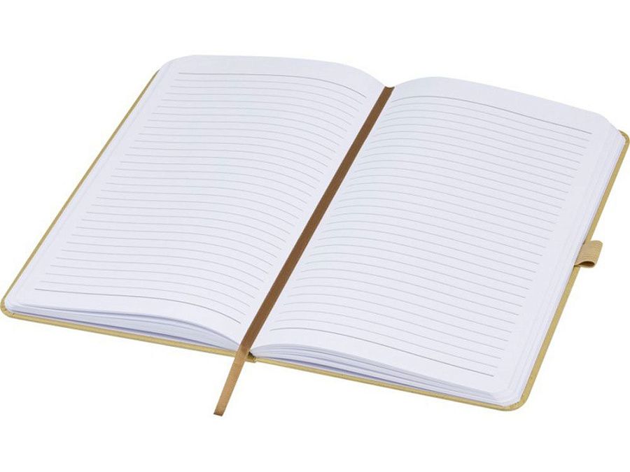 Легкий блокнот в твердой обложке для повседневных заметок с обложкой из материалов из ответственных источников. Коричневая обложка содержит остатки кофе, зеленая — остатки оливок, а белая — кукурузы. Имеет 80 листов (70 г/м²) из переработанной белой линованной бумаги.