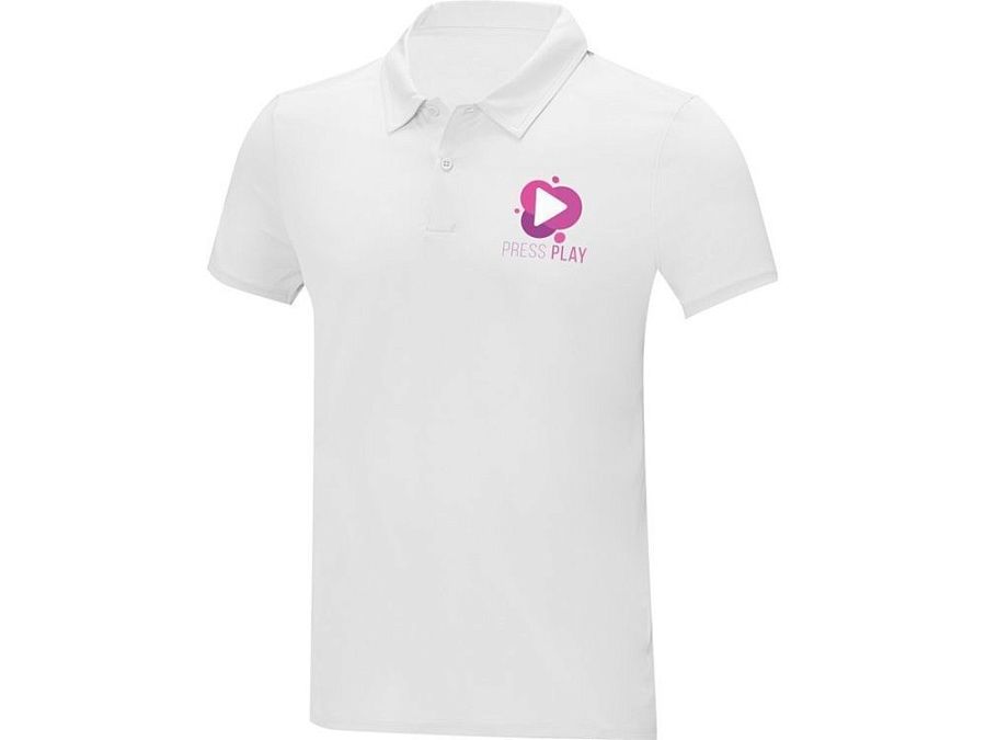 Мужская стильная футболка поло с короткими рукавами Deimos. Возможность нанесения на внутреннюю часть фирменной символики. Планка с двумя пуговицами. Для большего комфорта основной ярлык можно оторвать или отрезать. Обработка воротника обтачкой из основной ткани. Передний боковой шов со строчкой «флатлок». Сетчатая ткань с покрытием cool fit 100% Полиэстер, 105 g/m2.