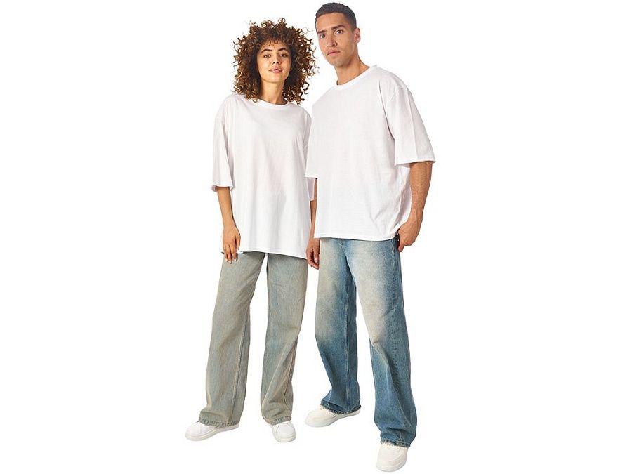 Футболка оверсайз предназначена для женщин и мужчин, имеет расслабленное настроение, которое подчеркивается не только посадкой, но и декоративной отделкой низа рукавов и горловины.
