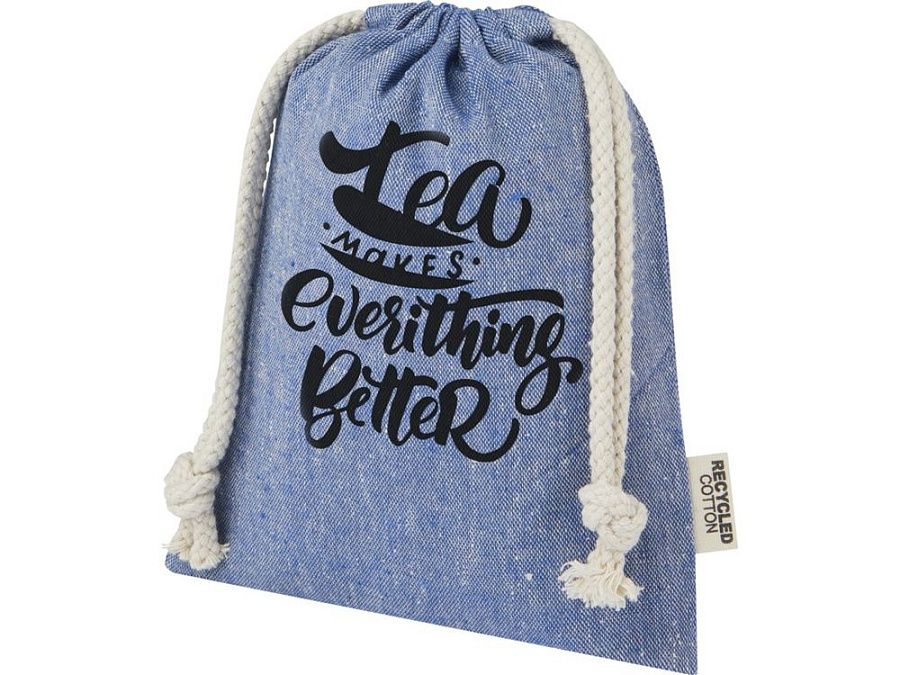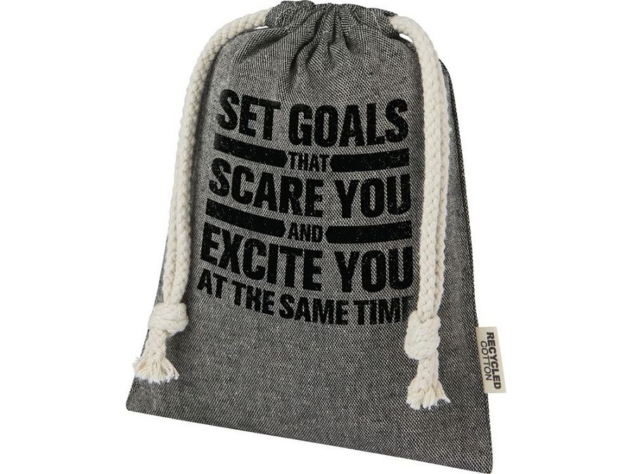 Подарочная сумка из хлопка, переработанного по стандарту GRS, с хлопковым шнурком для затягивания. Идеально подходит для подарков или хранения предметов. Размер: 15 x 20 см.