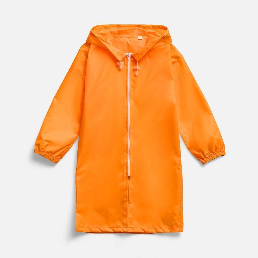 Детский дождевик на молнии из таффеты с влагозащитным покрытием. Складывается в мешочек — удобно брать с собой.