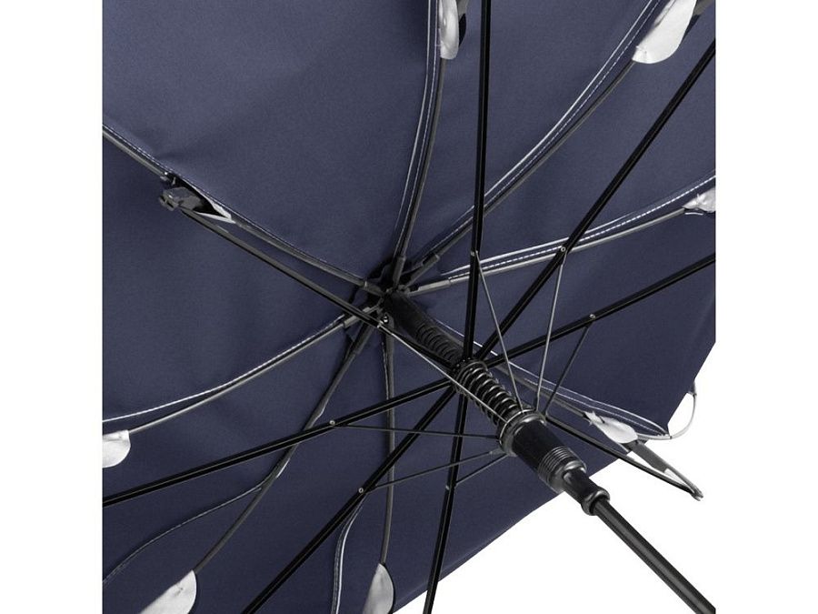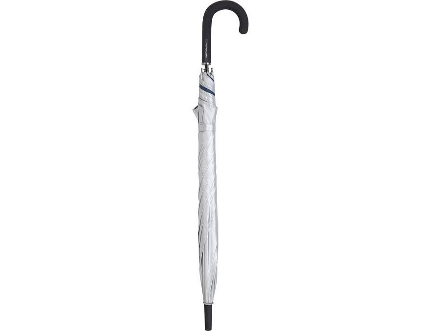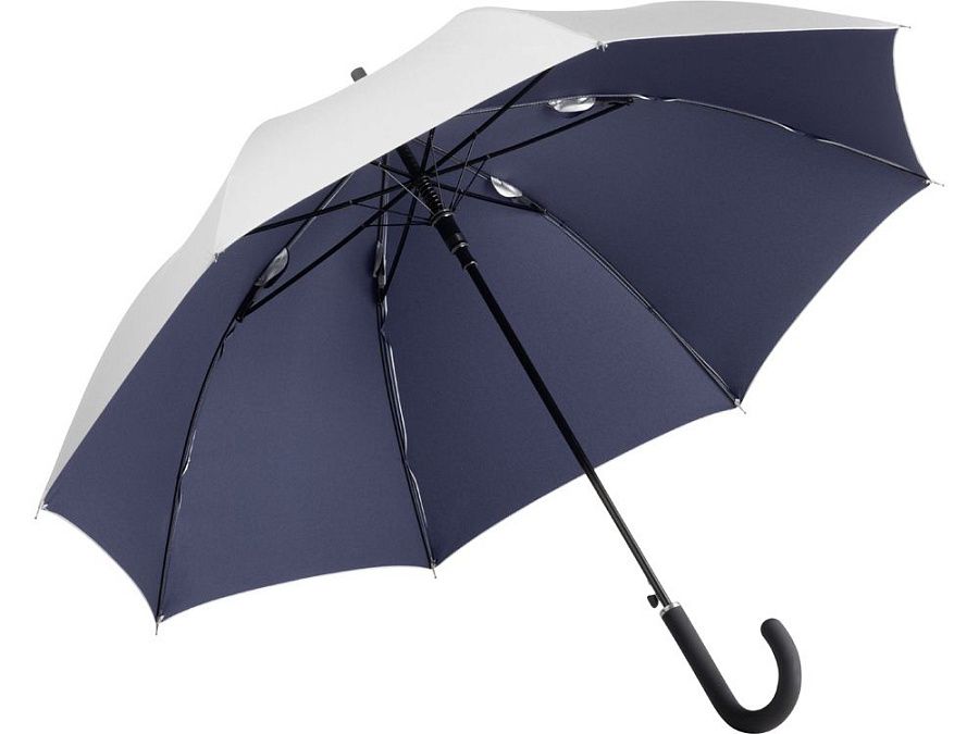 Двухцветный купол этого зонта-трости делает его ярким аксессуаром. Плавно открывается нажатием кнопки на ручке. Каркас из особо прочной гальванизированной стали.