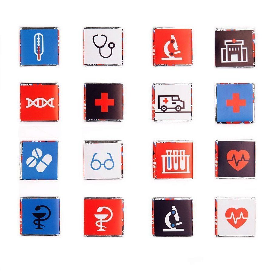 На обратной стороне каждой плитки изображены главные медицинские символы.