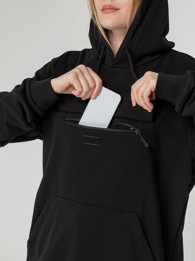 Худи унисекс с карманом на груди Chest Pocket, черное, артикул 15501.30