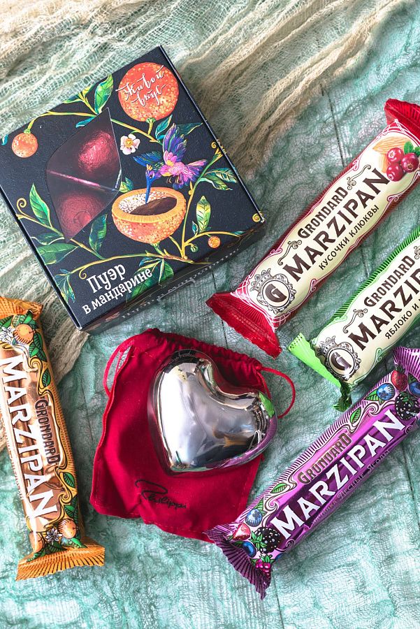 1.Музыкальный антистресс Heart sound от немецкого бренда Philippi. Издает мелодичный звон при перекатывании в руках.2.Чай черный китайский высокогорный Пуэр, цедра мандарина, 42 г