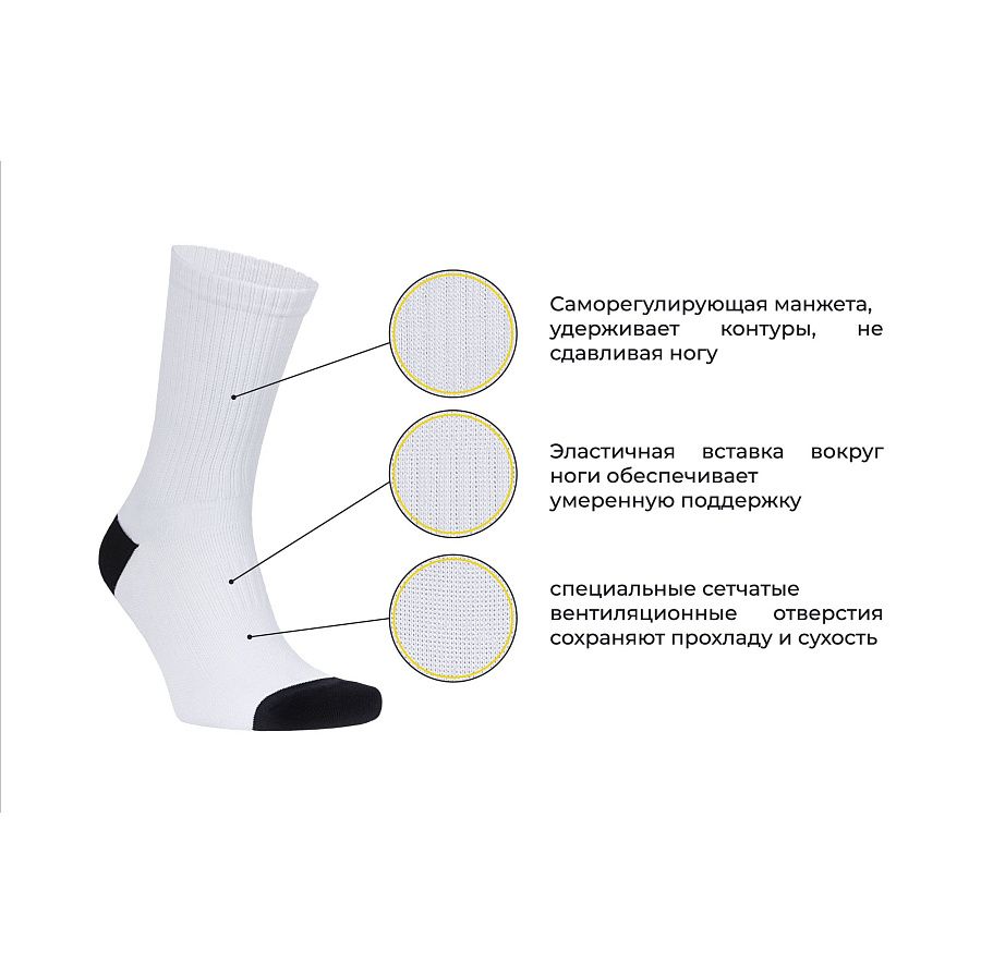 Эластичная манжета держит носок на ноге даже при активном использовании. Бег, катание на доске – легко! Дополнительная вставка вокруг голени делает носок более прочным и долговечным. Благодаря сетчатому плетению, носок «дышит», происходит максимальный отвод лишнего тепла и влаги во время любой активности.Пятка и носок только черного цвета.