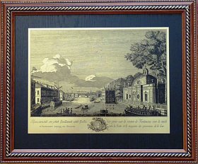 Гравюра "Гавань Брюгге" в раме с лепниной