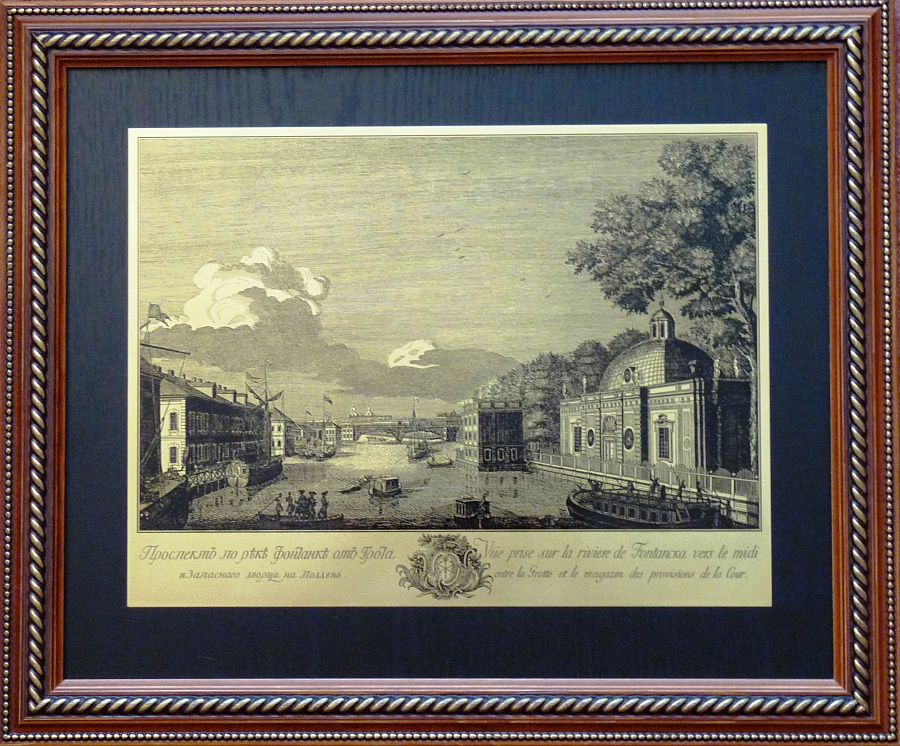 Гравюра "Вид Адмиралтейства и ИС в 1720 году" в vip раме, артикул 4050138