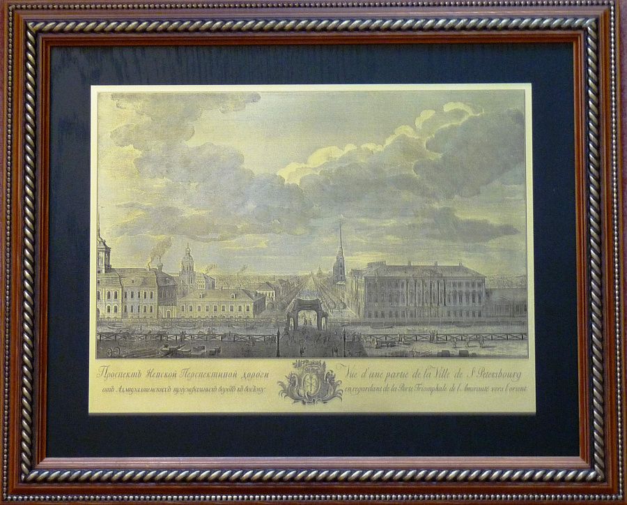 Гравюра "Вид Адмиралтейства и ИС в 1720 году" в vip раме, артикул 4050138