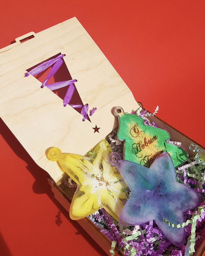 -Коробка с гравировкой и атласной лентой-Бумажный наполнитель