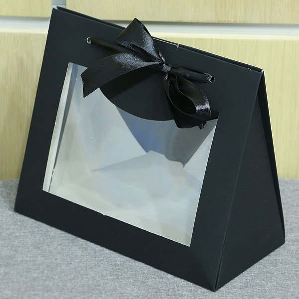 21*18,5*10,5 (см.) Коробка из черного "бархатного" дизайнерского картона с прозрачным окошком и атласной лентой.