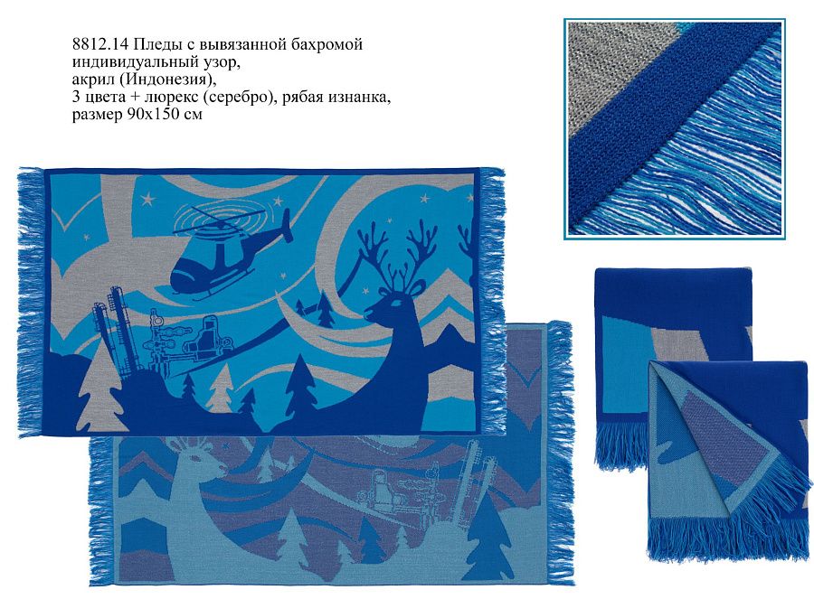 Бахрома вывязывается по коротким сторонам. Бахрома может быть однотонной или цветной (цвета только из узора пледа).