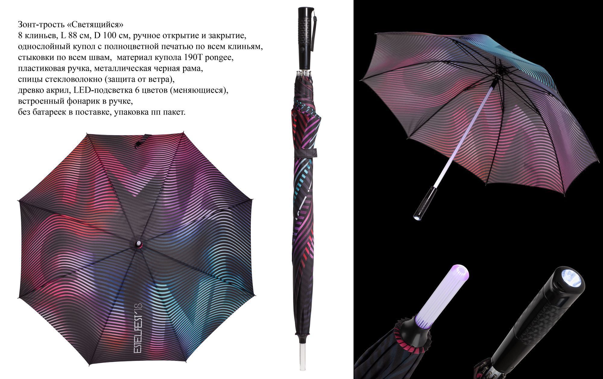 Дополнительные возможности – чехол с печатью. Зонт-трость, 8 клиньев, L88 см, D100 см.