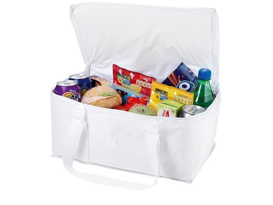 Большая сумка-холодильник на 17л вмещает до 12 банок. Стропу можно использовать для переноски полотенца.