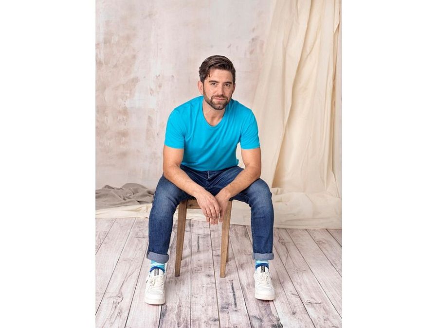 Экологически безопасная акционная одежда. Круглый вырез. Боковые швы. Двухцветная лента от плеча к плечу с символикой. Воротник из гладкого трикотажа. Двойная игольная строчка. Главный лейбл нанесен методом термоприклеивания, удобным для размещения рисунков на ткани. Одинарный джерси100% Органический хлопок, 160 g/m2.