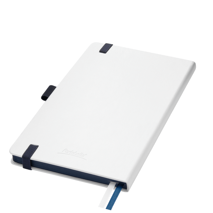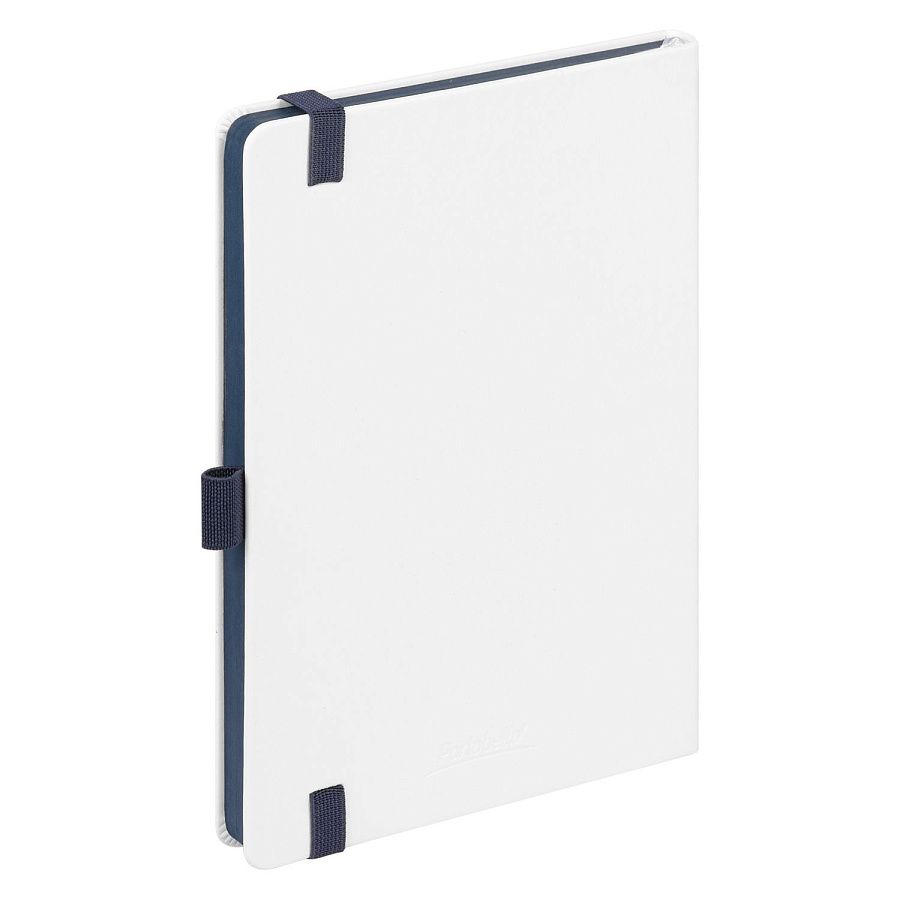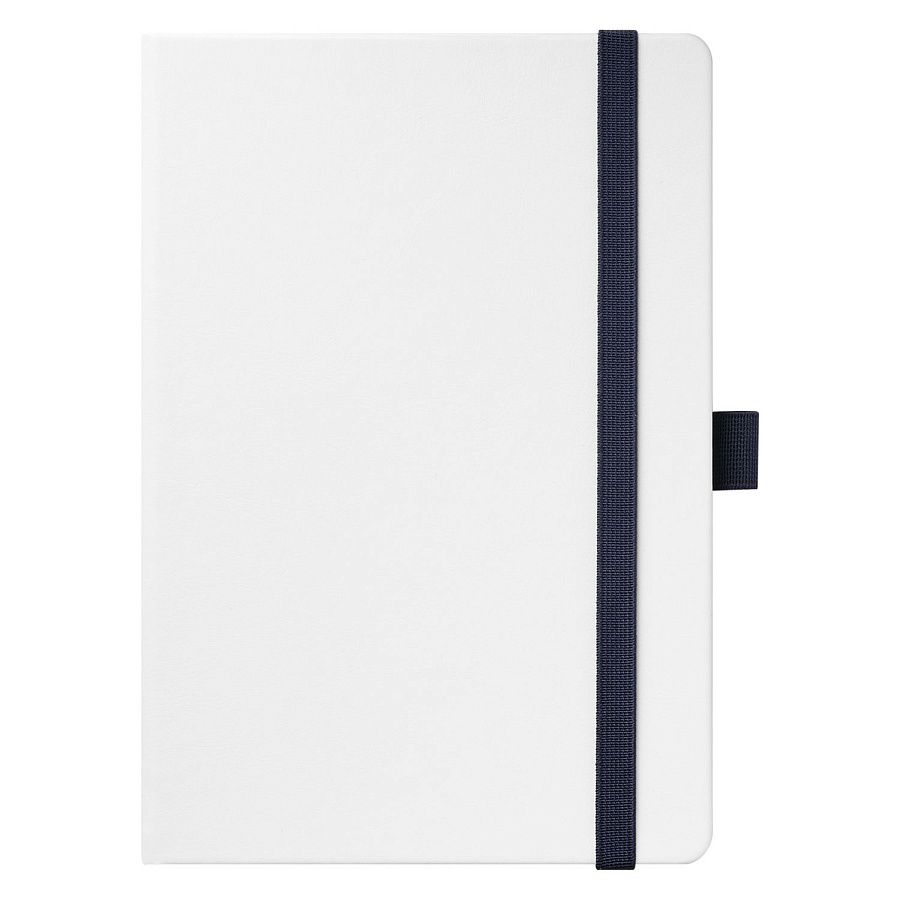 Недатированный ежедневник выполнен в жесткой обложке из искусственной кожи со скругленными уголками. Переплетный материал гладкий, с легкой естественной паутинкой морщин, имеет полуглянцевый блеск. Цвет – чистый белый. Серые матовые форзац и нахзац, а также синий срез блока создают оригинальный динамичный цветовой ансамбль и подчеркивают белизну обложки. Страницы светло-кремового цвета, из гладкого офсета, слегка шелковистые, со скругленными уголками. Добавляют изделию мягкую комфортную теплоту. Двойное атласное ляссе составлено из синей и белой лент. Каждая шириной 6 мм, имеет легкий блеск. Вертикальная фиксирующая резинка прочная, надежная и удобная, в тон срезу. Есть петелька для ручки в тон резинки. Карман на заднем форзаце.