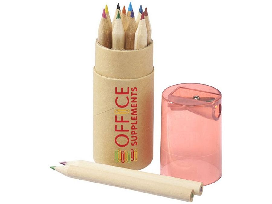 Набор из 12 маленьких карандашей в картонном стакане с точилкой.