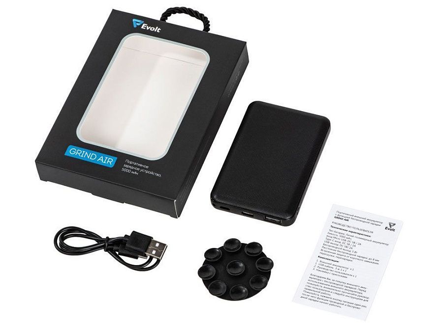 Суперкомпактный и легкий внешний аккумулятор с функцией беспроводной зарядки 5 Вт. Корпус из прочного ABS-пластика имеет специальную тактильную поверхность для защиты от царапин и случайного выскальзывания из рук. Надежная литий-полимерная батарея А-класса емкостью 5000 мАч. В комплекте кабель USB – Micro-USB и отдельная секция с присосками. Стикер с присосками можно при желании наклеить на повербанк, чтобы его можно было крепить к задней стенке Вашего смартфона. Таким образом смартфоном можно продолжать пользоваться и звонить без всяких неудобств даже во время зарядки.