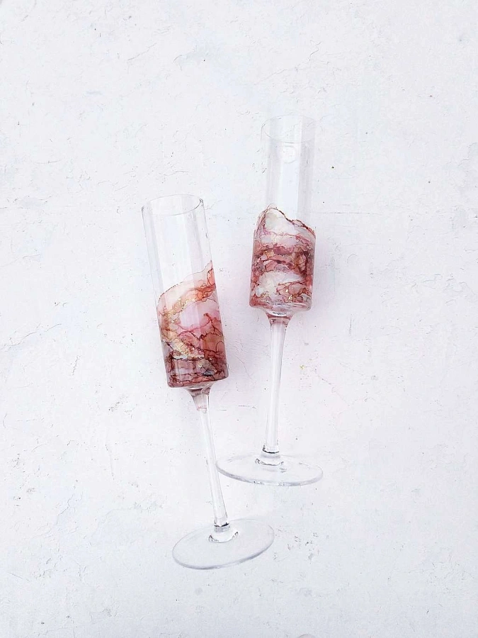 Эксклюзивный набор ручной работы. Бокалы для игристого в модной форме «EDGE» и подстаканники из эпоксидной смолы, дополненные брендированной открыткой.