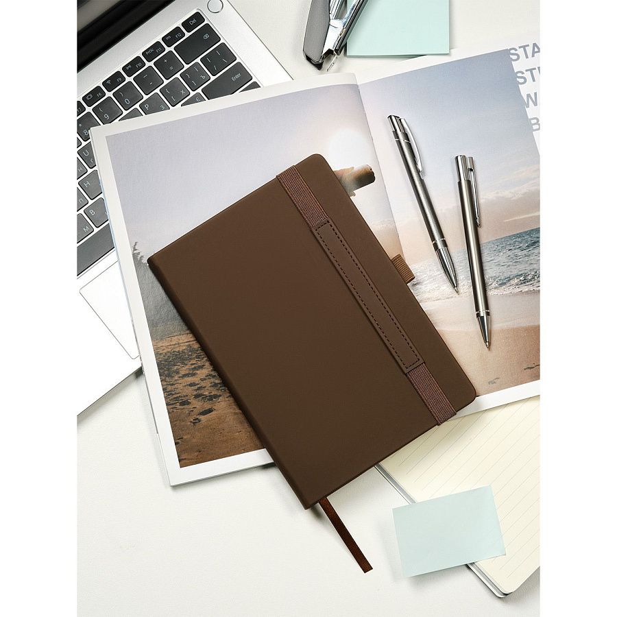 Вертикальная резинка-фиксатор с вставкой из ПУ-материала обложки и петелька под ручку, в цвет обложки